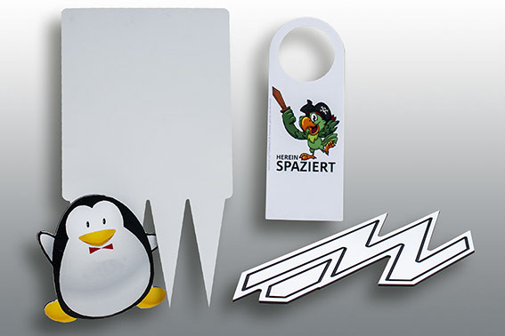 Durch den Einsatz der CNC-Frästechnik können individuelle Formen und Zuschnitte realisiert werden. Durch diese Technologie lassen sich konturgeschnittene Schilder, Praxis- und Typenschilder, Buchstaben, Kästen, Bauteile, Schablonen und vieles mehr erzeugen. In Kombination mit LED-Leuchten können auch die unterschiedlichsten Arten von beleuchteten Vollacrylbuchstaben hergestellt werden. Eine weitere Anwendung ist die individuelle Herstellung von Kartonagen (Muster oder Kleinauflagen).