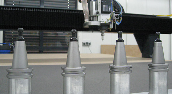 Je nach Material und Anwendung wird ein entsprechendes Werkzeug automatisch geladen. Neben den klassischen Fräswerkzeugen verfügt die Fräse auch über ein oszillierendes, sowie über ein Schleppmesser, womit auch Durchschneidearbeiten in z. B. Planen oder Leder möglich sind.